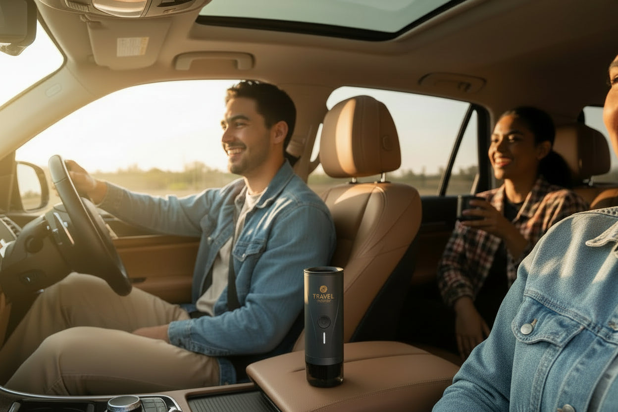 Avec Travel Presso, ne perdez plus de temps à vous arrêter sur une aire de repos pour boire un café.