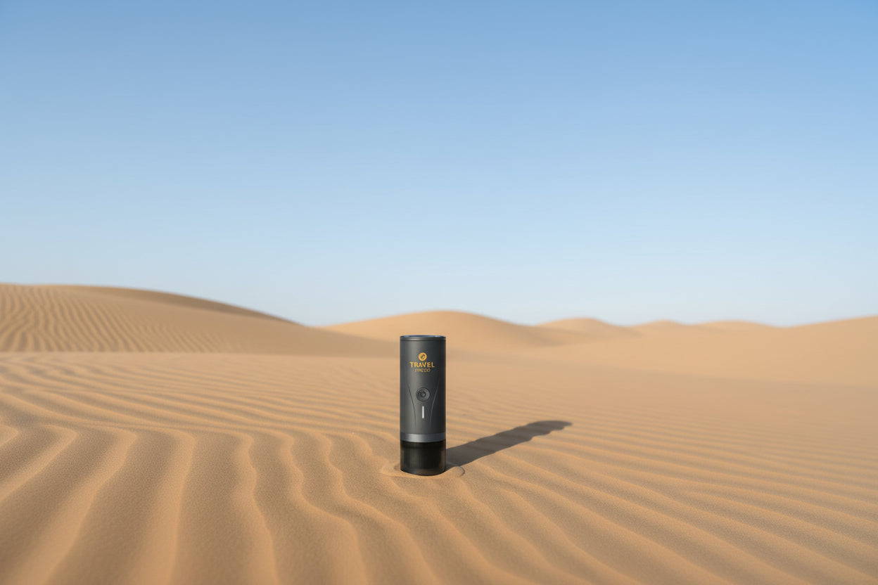 Notre volonté est de permettre à chacun d'entre vous de déguster un café sans dépendre d'une cafetière classique. Grâce à sa taille et son poids, cette machine à café nomade Travel Presso fonctionne sans fil la rendant transportable aussi bien dans le désert qu'en forêt.